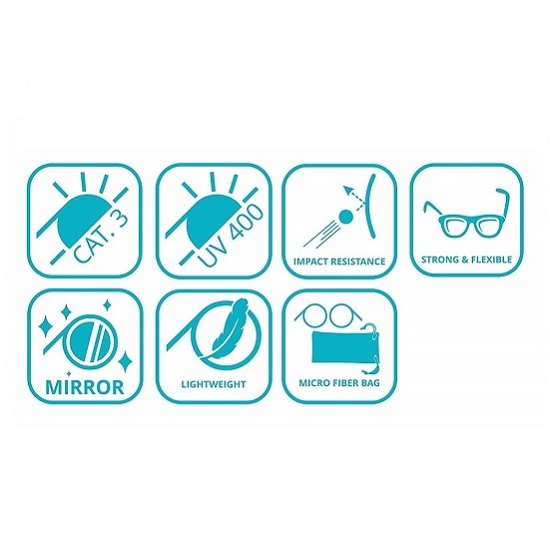Tough and protective sunglasses for kids in a stylish design and with a good fit. Koolsun Wave Sky Blue sunglasses have a durable frame and temples in flexible material. The lenses in Revo technology are made of strong and durable polycarbonate which provides 100% UV protection (UV-A and UV-B) and high resistance to scratches. All Koolsun glasses come with a storage bag made of microfiber.