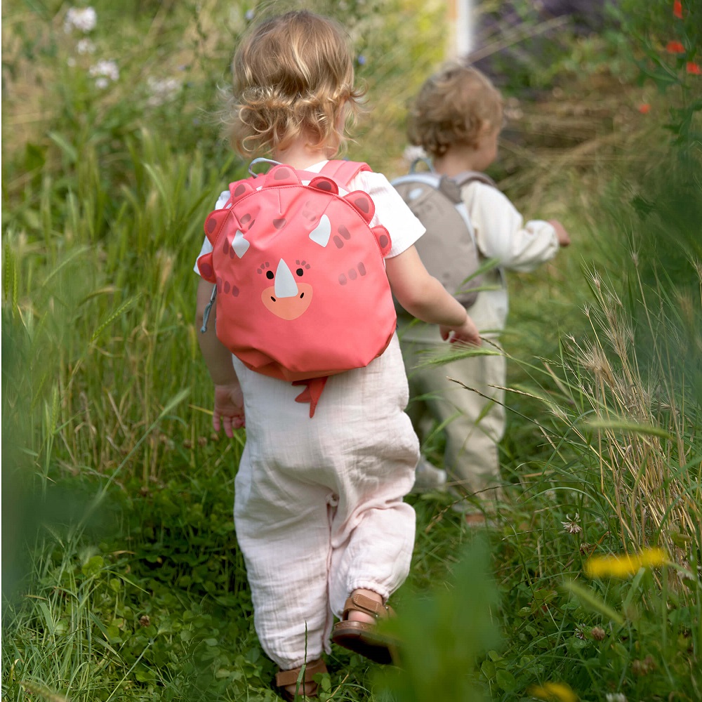 Lässig About Friends Pink Dino is a cute and durable backpack for slightly smaller children. The cute animal backpack has adjustable and padded shoulder straps with a chest belt so that the backpack sits both stably and comfortably on the child's back. Inside the backpack is a holder for a drinking bottle and a practical name tag. The backpack is PCTA - approved vegan. Use the backpack for kindergarten, excursions or for all the child's little things on the trip.