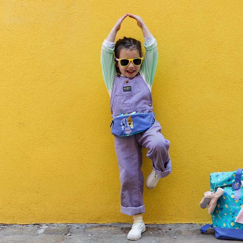 Practical fanny pack for children for better control of phone, keys, money and small items. Les Deglingos Bum Bag Zebra, has a spacious compartment that closes with a zipper. The waist bag can be carried in two ways, fastened around the waist or across the shoulder. The Les Deglingos fanny pack is adapted to the child's size with an adjustable belt with a clip buckle. Use the waist bag when traveling for snacks and small items or at school for mobile, keys and money.