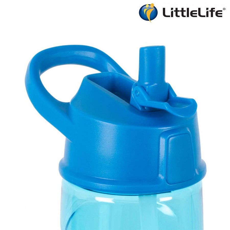 LittleLife Blue is a durable, smart and sturdy water bottle (550 ml) for children to use on the go, at school or during training. The bottle is made of shock-resistant and non-toxic Tritan co-polyester that does not emit odor or taste and is completely BPA-free. Littlelife water bottle for kids has a leak-free lid with a fold-down drinking spout where the spout is made so that it resists the child's chewing. There are also a carrying handle on the lid.