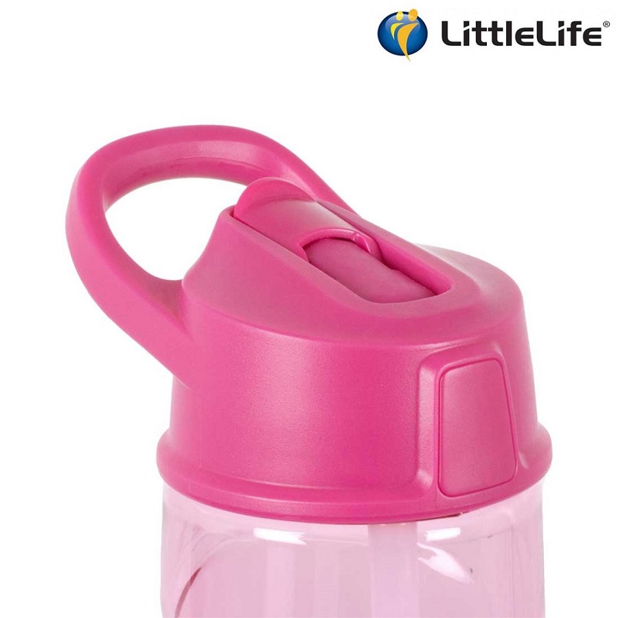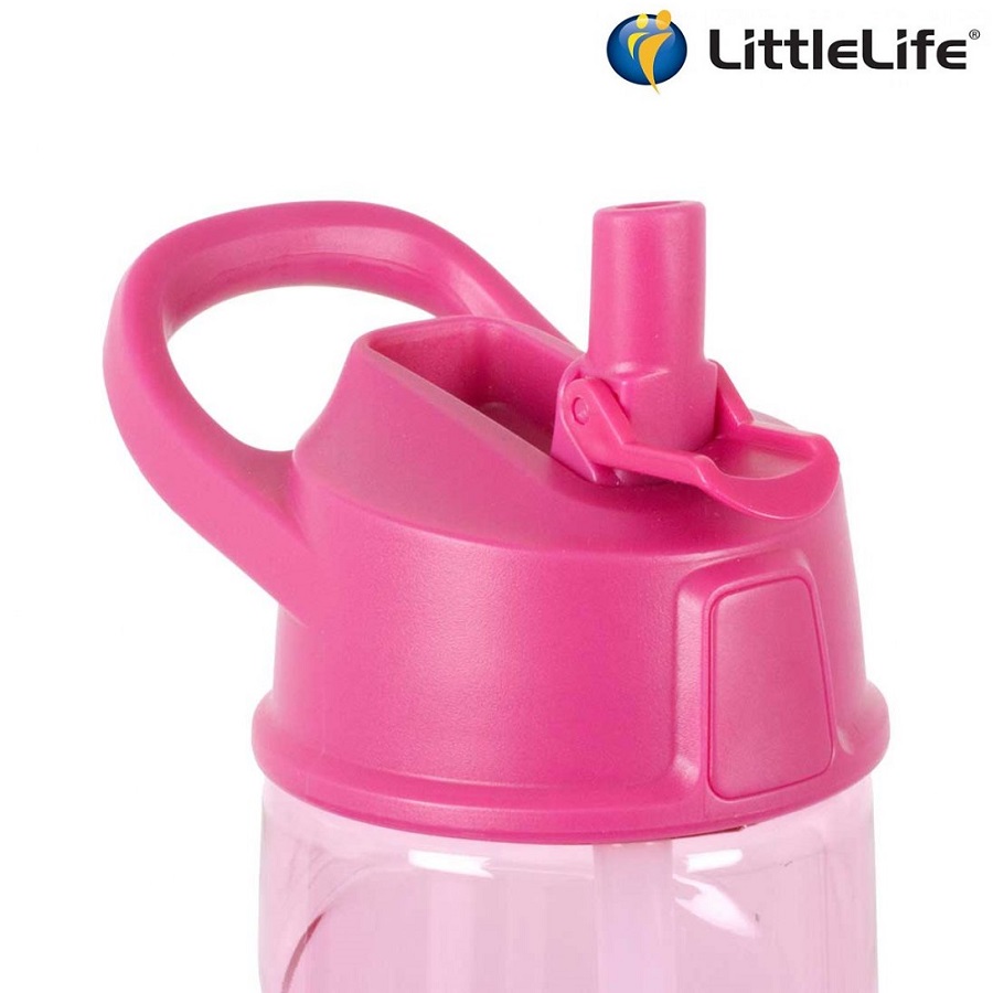 LittleLife Pink is a durable, smart and sturdy water bottle (550 ml) for children to use on the go, at school or during training. The bottle is made of shock-resistant and non-toxic Tritan co-polyester that does not emit odor or taste and is completely BPA-free. Littlelife water bottle for kids has a leak-free lid with a fold-down drinking spout where the spout is made so that it resists the child's chewing. There are also a carrying handle on the lid.