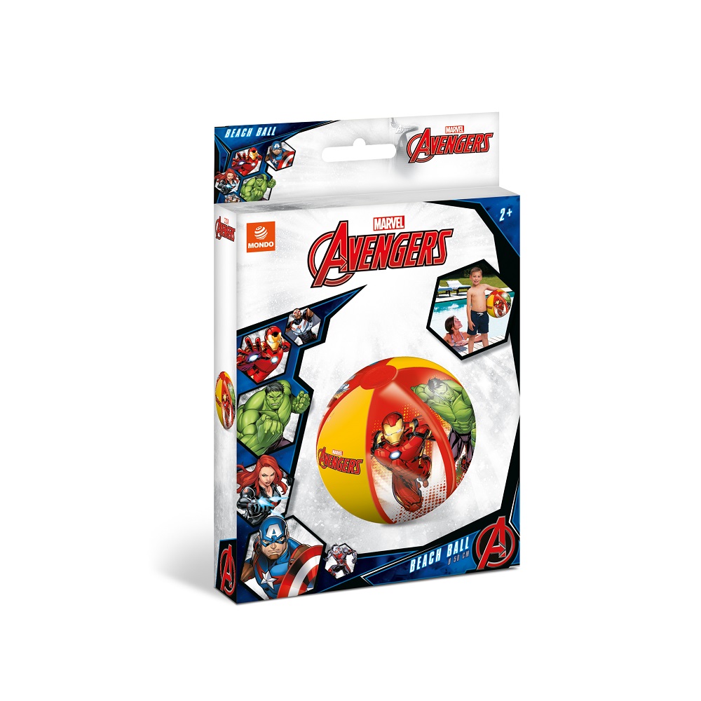 Inflatable beach ball made in a nice Avengers design. The Mondo beach ball is 50 cm in diameter and is made of durable material with a safety valve. Take a beach ball with you on your beach holiday and use it in the pool and the sea. Mondo beach ball is intended for children from about 2 years of age.
