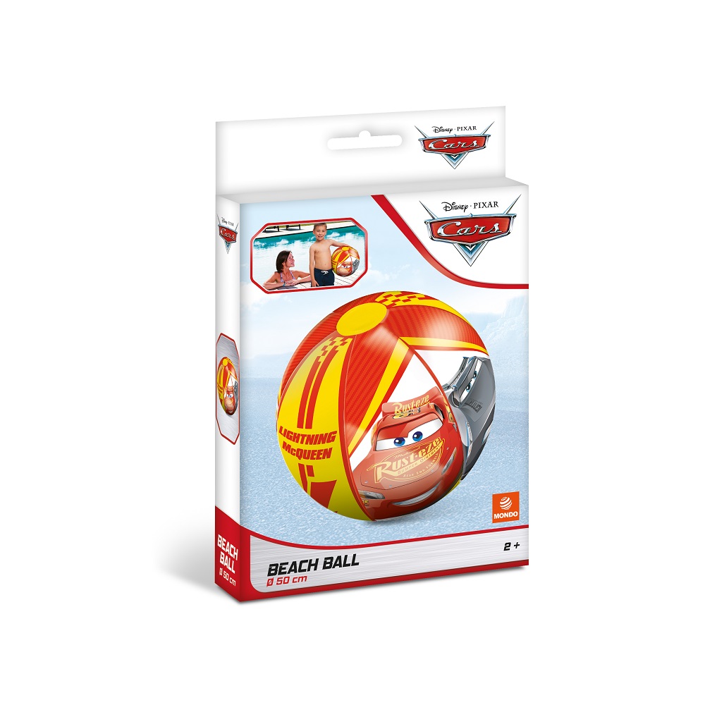 Inflatable beach ball made in a nice Cars design. The Mondo beach ball is 50 cm in diameter and is made of durable material with a safety valve. Take a beach ball with you on your beach holiday and use it in the pool and the sea. Mondo beach ball is intended for children from about 2 years of age.