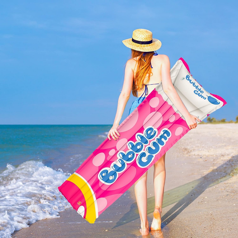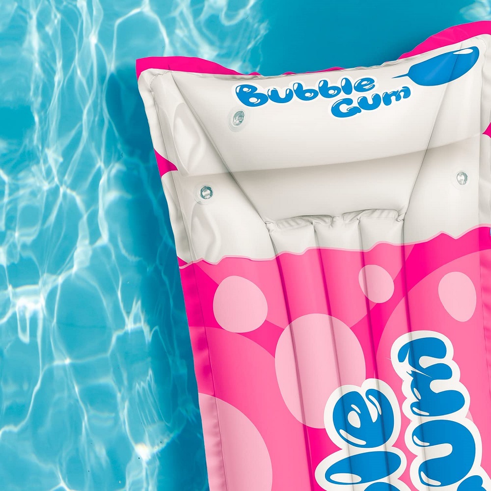 Mondo Bubblegum is an inflatable and stable water mattress. The water mattress, which has five channels and a pillow, is made of durable material with two separate air chambers with safety valves. The Mondo water mattress has a capacity of up to 80 kg and is intended for children aged 6+. Take the water mattress with you on your holiday in the sun or use it at home in the pool or in the sea.