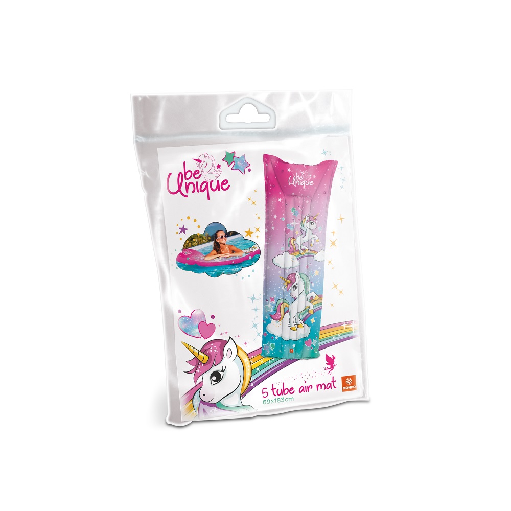 Mondo Unicorn is an inflatable and stable water mattress. The water mattress, which has five channels and a pillow, is made of durable material with two separate air chambers with safety valves. The Mondo water mattress has a capacity of up to 80 kg and is intended for children aged 6+. Take the water mattress with you on your holiday in the sun or use it at home in the pool or in the sea.