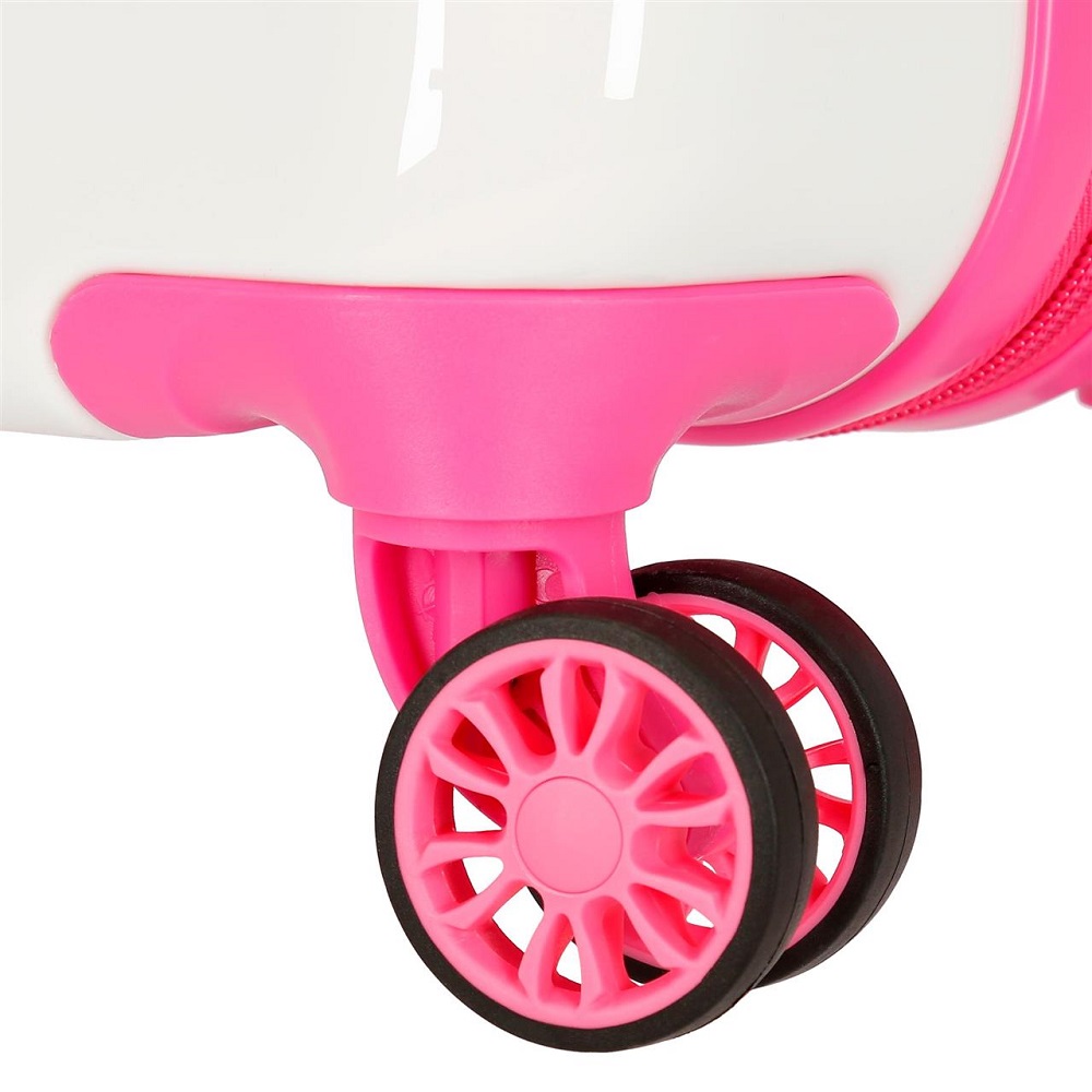 Movon Butterfly is a suitcase for children with telescopic handle, four silent wheels (360 degrees), carry handle, code lock and with 35 liters packing space. The suitcase is lined inside – one side with zipper compartment and one side with elastic straps. The suitcase is made in a stylish design in durable molded plastic (ABS). A suticase for your child is perfect for all clothes, toys and gadgets that ar to go on the holiday trip.