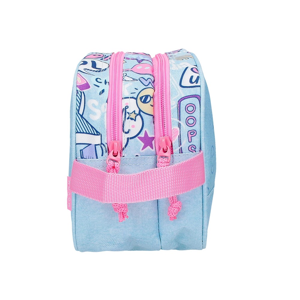 Movom Power Girl children’s toiletry bag combines stylish design with smart storage, helping kids keep their belongings organized with ease. Featuring two spacious compartments, it provides plenty of room for a toothbrush, hairbrush, soap, and other everyday essentials — perfect for daily use, sleepovers, or travel. Made from durable, water-repellent material, it protects the contents from moisture and spills while remaining easy to clean when needed. The secure zipper closure keeps everything in place, and the practical design allows the bag to double as a pencil case or a handy pouch for toys and accessories. A convenient carry and hanging handle makes it simple to use at home or on the go.