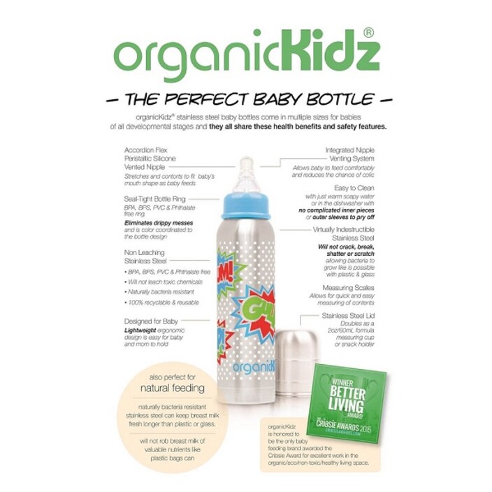 • Standard silicone nipples from other manufacturers also fit in OrganicKidz baby bottles.