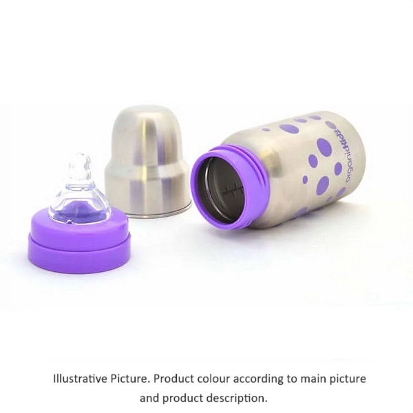 Durable and practical thermal baby bottle (200 ml) in stainless steel with thermos function. OrganicKidz Thermal Baby Bottle Pink Dots keeps the drink hot or cold for up to 6 hours. A thermo baby bottle is a functional and safe alternative to plastic and aluminum bottles. Free from PVC, bisphenol A and Phthalates. Smart and practical on the go, in town, when travelling or in nature.