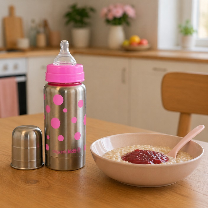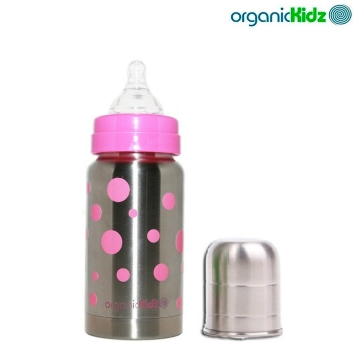 - Thermal Baby Bottle - OrganicKidz Pink Dots