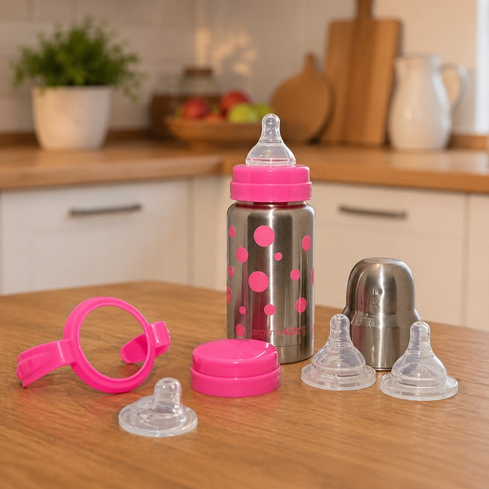 Thermal Baby Bottle Set - OrganicKidz Pink Dots