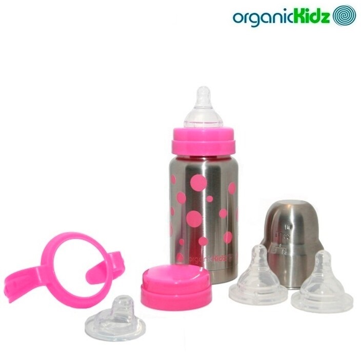 - Thermal Baby Bottle Set - OrganicKidz Pink Dots