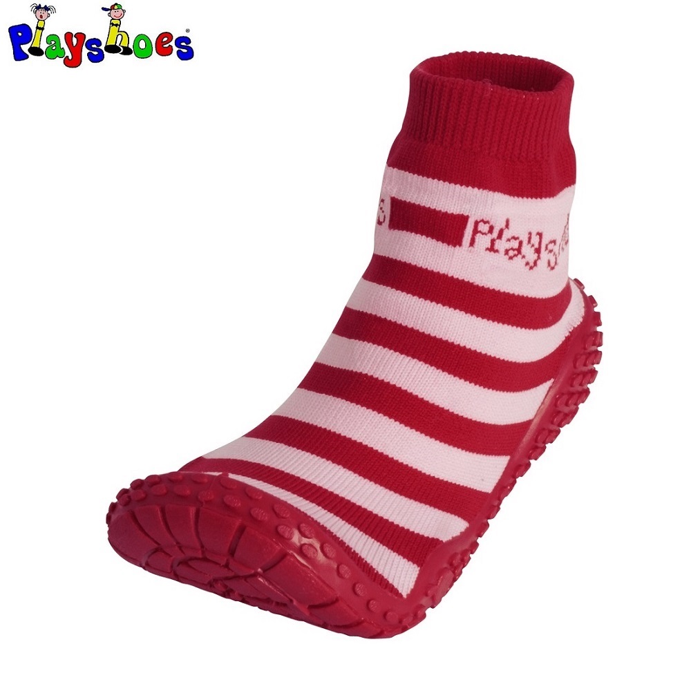 Playshoes Aquasocks Pink Stripes are comfortable and protective beach and waters socks for children for both beach and bathhouse. The beach socks have a sturdy TPR rubber sole that protects the child's foot from sharp rocks and from hot sand on the beach. In the bathhouse, the socks reduce the risk of your child slipping.