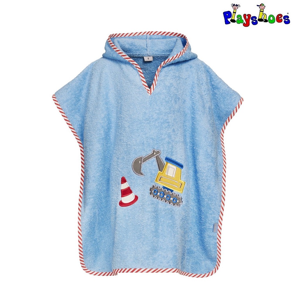 Plashoes Excavator is a lovely and cozy hooded bath poncho for children. The poncho is made in a nice design for children to warm up in after the bath. Playshoes poncho is made of soft and warming terry and has a generous hood. A bath poncho is perfect after the bath on the holiday, on the home beach or after the bath in the bathtub.