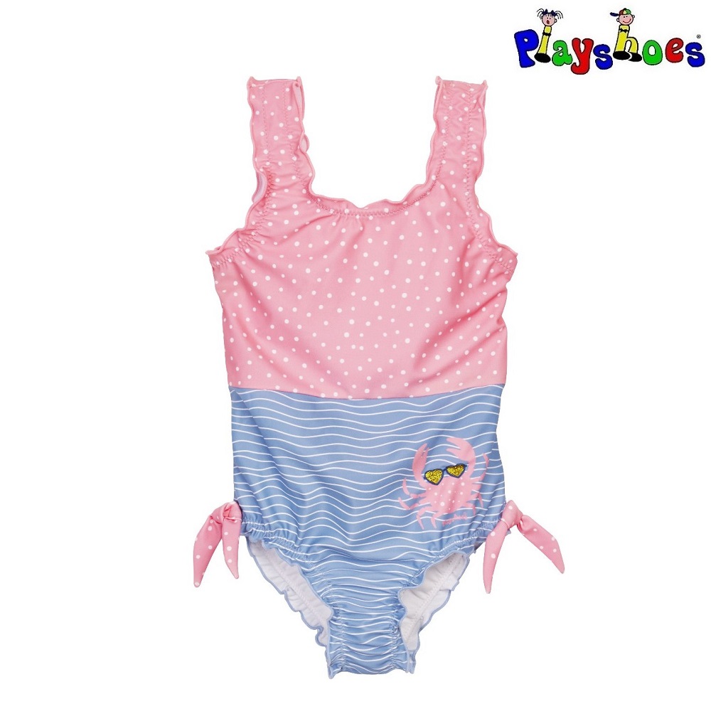 Cute and comfortable swimsuit for children with UV protection (UPF 50+). Playshoe's swimsuit Crab has a good fit with wide shoulder straps and elastic waistband. The swimsuit dries quickly and is made of Oeko-Tex approved (Standard 100) material. Playshoes swimsuit for children can be used in the pool as well in the sea.