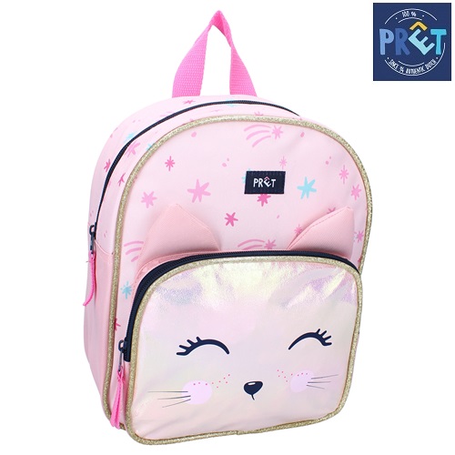 Prêt Giggle Light Pink Cat is a cute and functional backpack for children in a nice and durable design. The backpack has a main compartment, a pocket on the front of the backpack, adjustable and padded shoulder straps and carrying handles at the top.