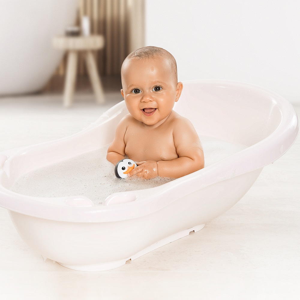 Reer My Happy Pingu is a functional and practical digital bath thermometer for bathing babies and children. In addition to measuring the temperature of the bathing water, it has a built-in timer. If the temperature becomes too high or low, the display flashes (green for low temperature and red for high temperature). At high temperature or when the time on the timer expires, an audible signal sounds to warn you of this. Warning sounds and flashing lights can be set from 37 degrees (on delivery, 39 degrees is set). Temperature and timer are shown in a clear LCD display and the bath thermometer measures between 0 and 50 degrees (Celsius). The thermometer works both for indoor and outdoor baths and also for measuring room temperature.