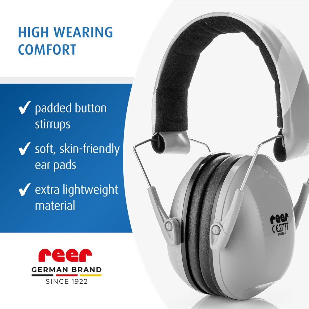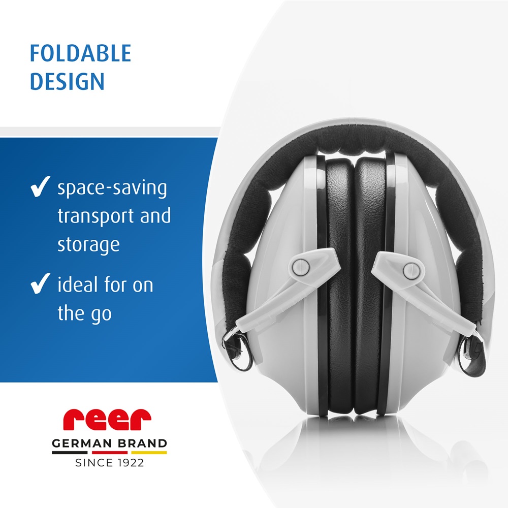 Reer SilentGuard Grey ear defenders - hearing protection for children that are both comfortable and give the child a really good protection in noisy environments, such as on flights, at concerts and sporting events. Reer ear muffs has soft and skin-friendly sealing rings around the child's ears, textile upholstery and adjustable headband for the best fit and comfort for the child. The ear defenders are CE marked and have a certified attenuation rate of SNB 27 dB. They can be folded and thus take up little space when not in use and are stored, for example, in hand luggage or in a backpack.