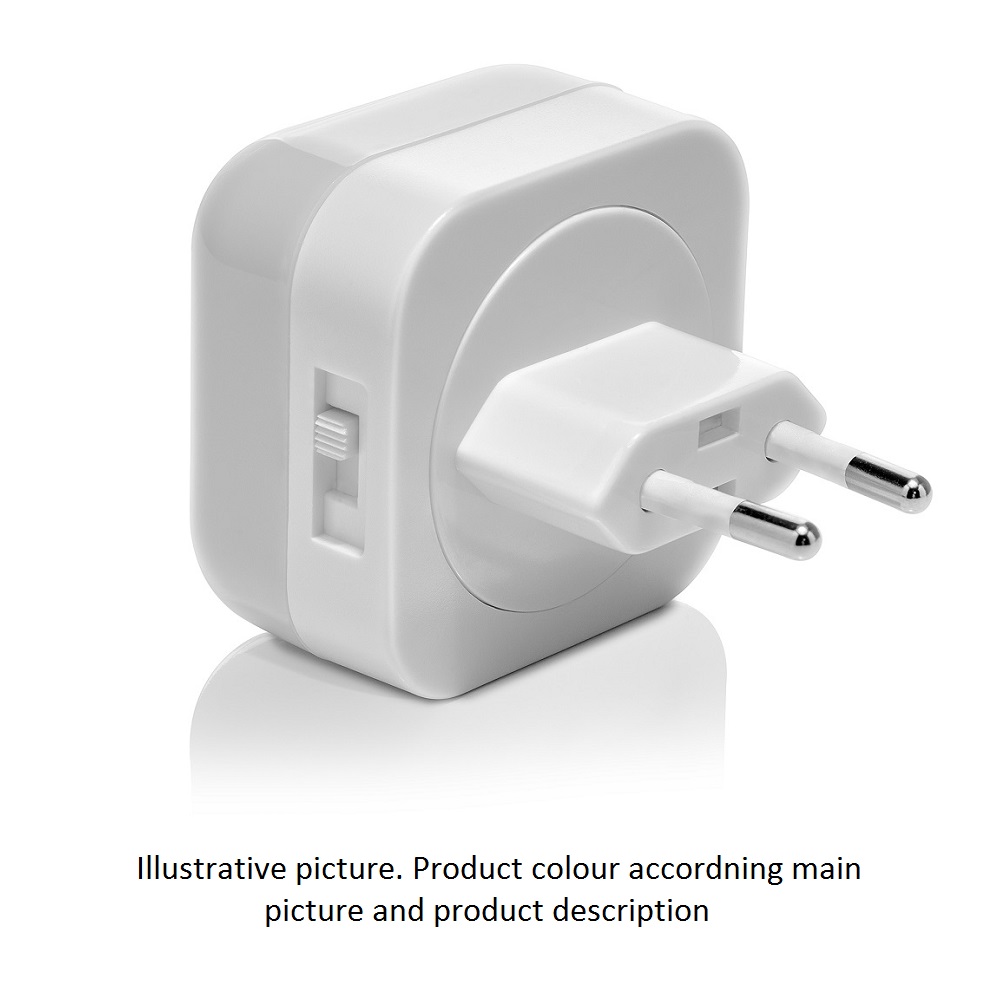 • Can be used in wall sockets or placed on a table in the supplied holder.