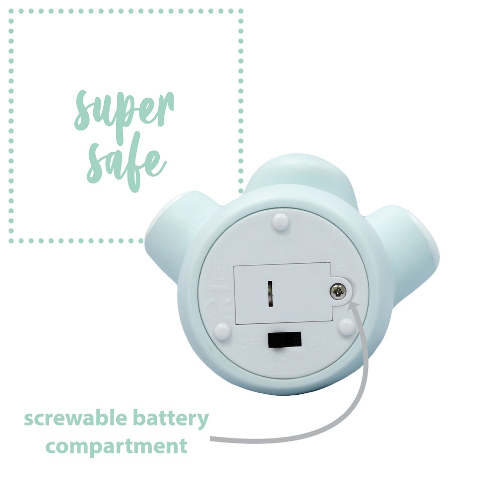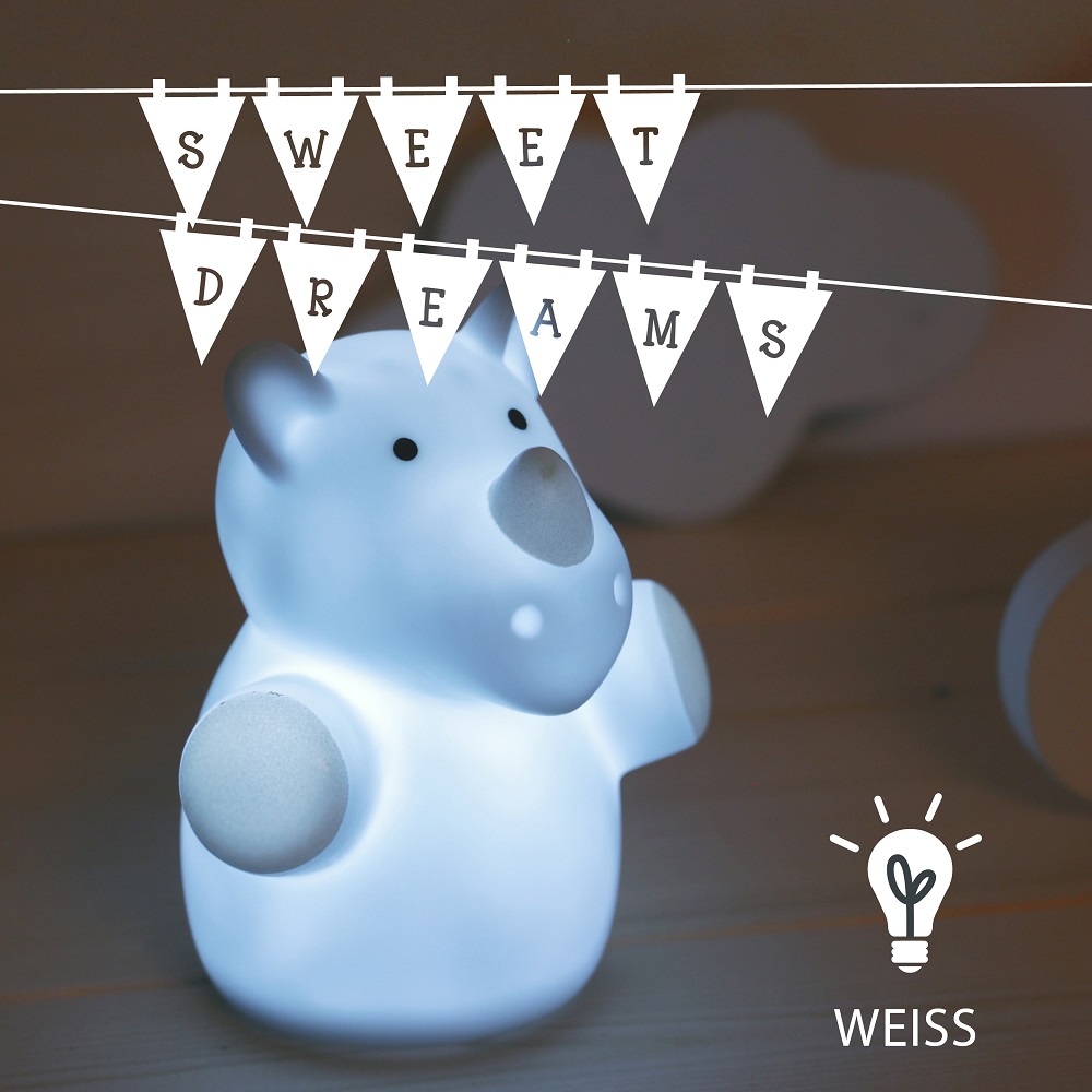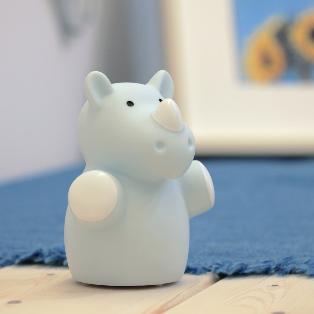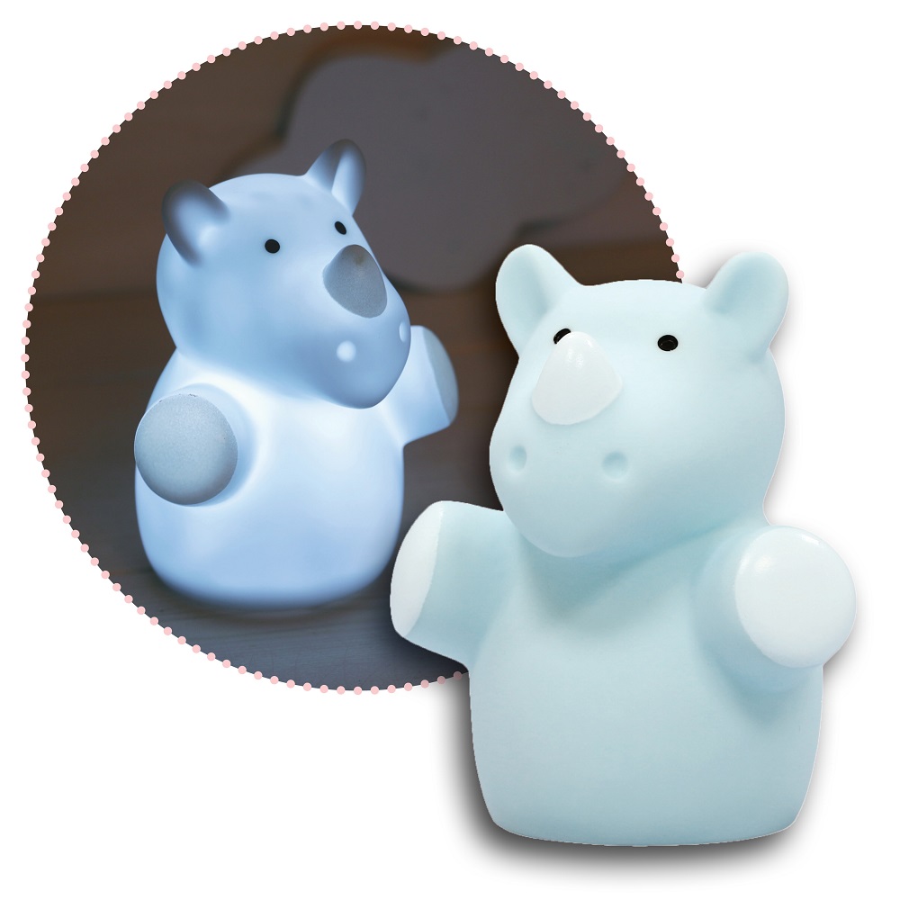Reer Mini Zoo Rhino is a cute and nice night light for children in the shape of a rhinoceros. The night light is battery-powered and illuminates with modern LED technology that does not emit heat and is free of BPA and Phthalates. The batteries are attached inside the lamp and the battery cover is secured with a screw so that the child cannot access them.