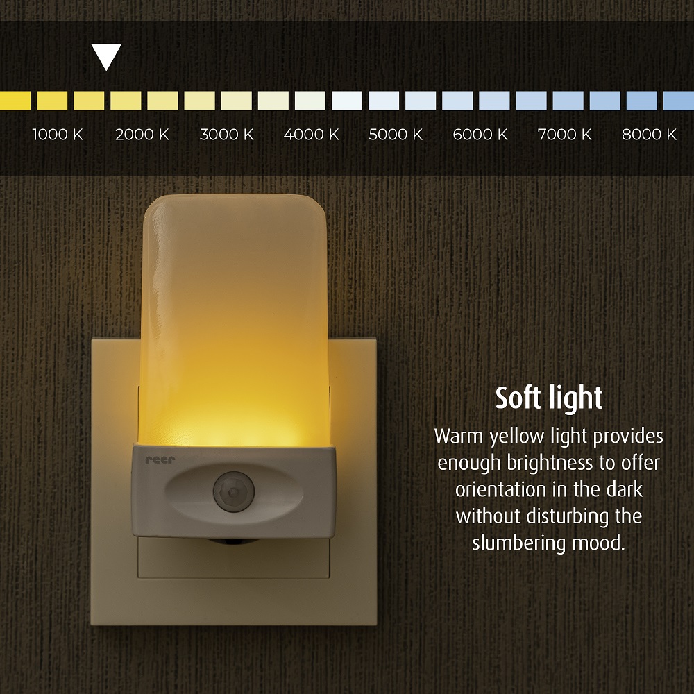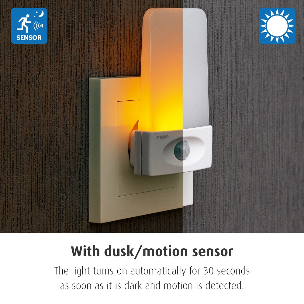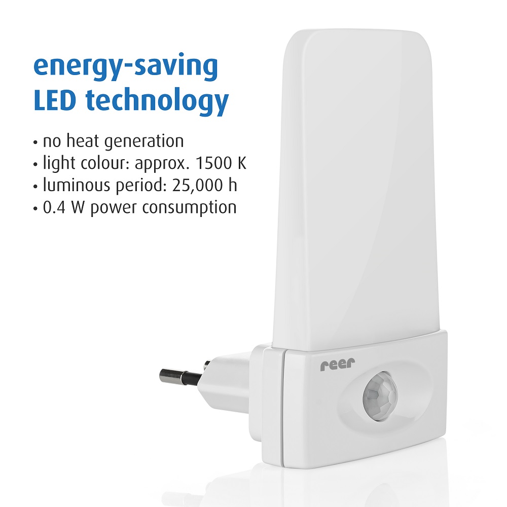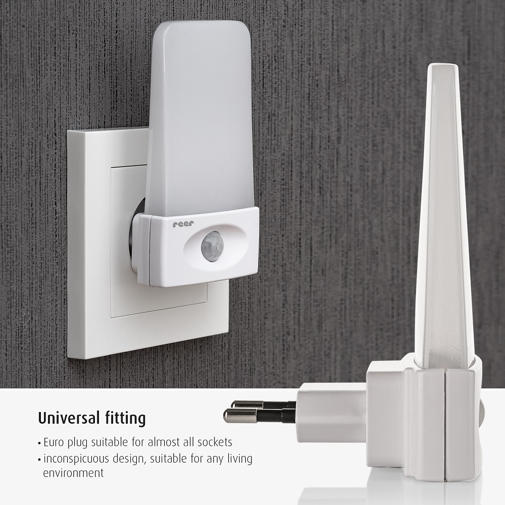 Reer Mama NightGuide Motion Sensor is a smart and functional night light with light and motion sensors. When the lamp detects movement, the night light turns on immediately so you can see in the dark. The lamp only lights up when it is dark in the room, i.e. not during the day. Reer Mama NightGuide is made in energy-saving LED technology. The LED technology also means that it does not emit heat. The night lamp is used in a standard electrical socket and shines with a soft white light .