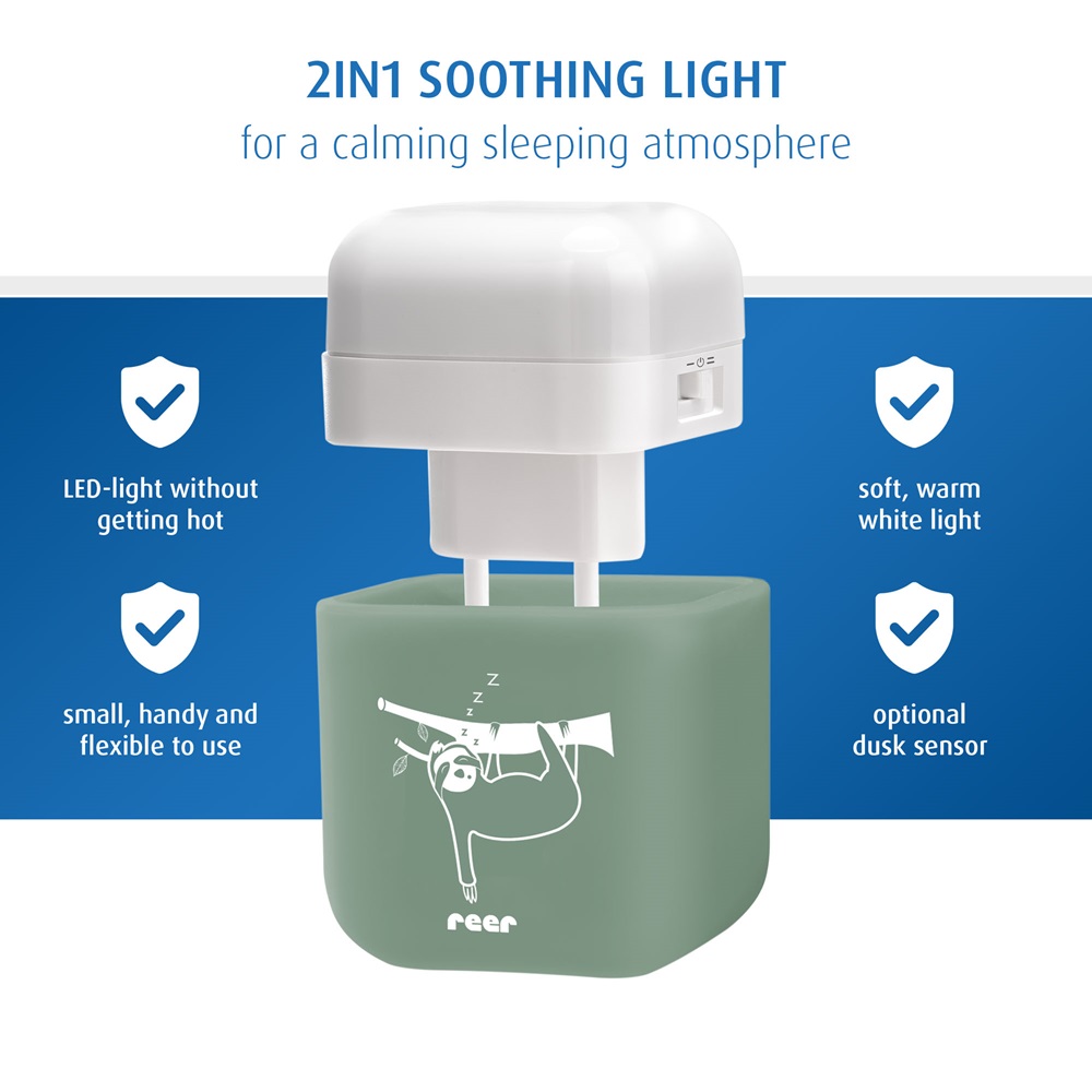 Reer Green Eucalypt Cube 2 in 1 SleepLight is a cute and practical night light for children that can be used both in a regular wall socket and freestanding, for example on the bedside table. The night light illuminates with a soft white light and can be set on two different brightness levels. The night lamp also has a light sensor, which means that it automatically goes out when it gets light and comes on again when it gets dark in the evening. Reer night light 2 in 1 SleepLight has rechargeable batteries (charges when used in electrical outlets) and is made with energy-saving LED technology which also means that the lamp does not get overheated. The night light can be used both daily in the child's room or taken along to the weekend trip, as it is small and handy to take along.