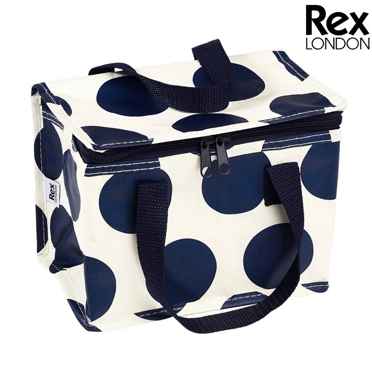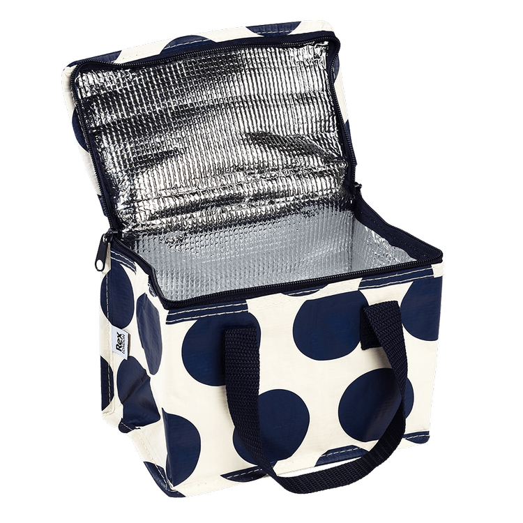 The Rex London Insulated Lunchbag Navy On White is a practical and lightweight small cooler bag made in lovely design. The cooler bag, which measures 21 x 16 x 12 cm, is made of recycled materials with a cold insulating interior. The Rex London Insulated Lunchbag is fully flat foldable, which means that it takes up little space when not in use. This small cooler bag is perfect, for example, for outings, for car, bus and train journeys or for food and drinks to school, work or the beach.