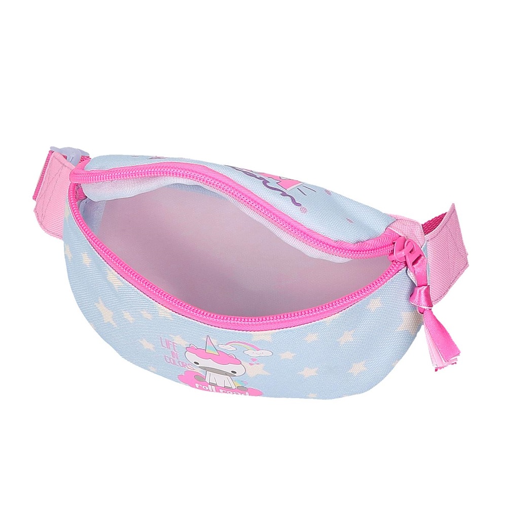 Practical and cute fanny pack for children for better control of phone, keys, money and small items. Roll Road I Am Unicorn waist bag has a spacious compartment that closes with a zipper. The waist bag can be carried in two ways, fastened around the waist or across the shoulder. The I Am Unicorn fanny pack is adapted to the child's size with an adjustable belt with a clip buckle. Use the waist bag when traveling for snacks and small items or at school for mobile, keys and money.