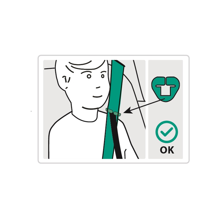 • Can be used in all vehicles with a 3-point belt