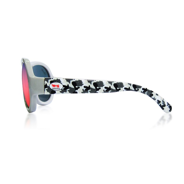 Shadez Design Camo Spaceship tough sunglasses for children are both comfortable and protective and made in Swiss design with a good fit. The sunglasses are made of very shock-resistant and flexible material and equipped with durable lenses, which provide 100% UV protection (UV-A and UV-B) and high resistance to scratches. All Shadez sunglasses are completely free of BPA, phthalates, vinyl, PVC and lead.