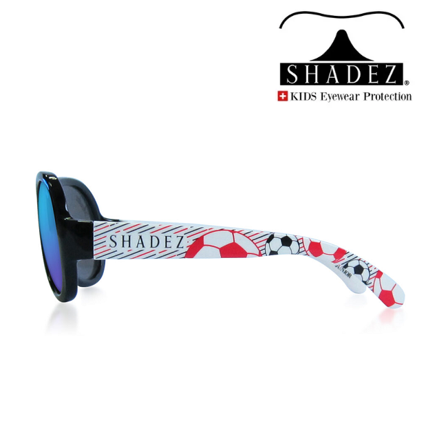 Shadez Design Football Star tough sunglasses for children are both comfortable and protective and made in Swiss design with a good fit. The sunglasses are made of very shock-resistant and flexible material and equipped with durable lenses, which provide 100% UV protection (UV-A and UV-B) and high resistance to scratches. All Shadez sunglasses are completely free of BPA, phthalates, vinyl, PVC and lead.