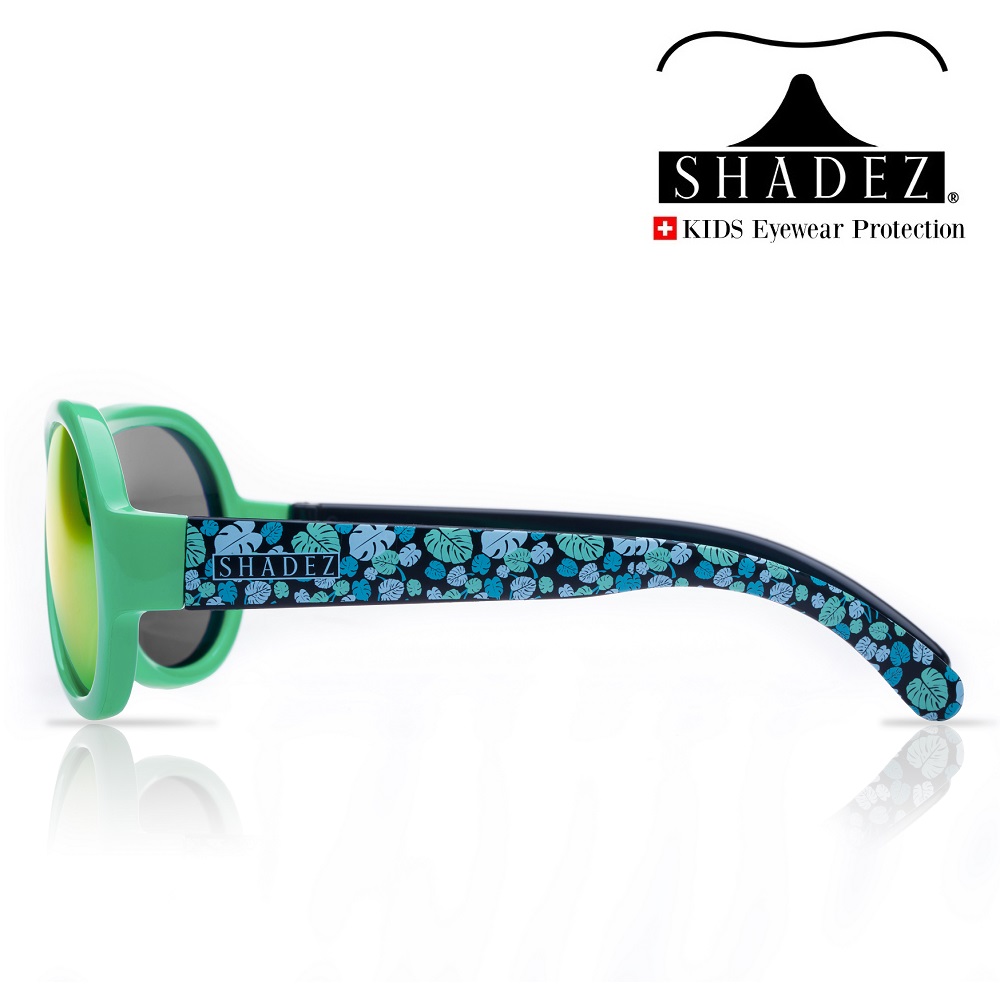 Shadez Design Green Leaves tough sunglasses for children are both comfortable and protective and made in Swiss design with a good fit. The sunglasses are made of very shock-resistant and flexible material and equipped with durable lenses, which provide 100% UV protection (UV-A and UV-B) and high resistance to scratches. All Shadez sunglasses are completely free of BPA, phthalates, vinyl, PVC and lead.