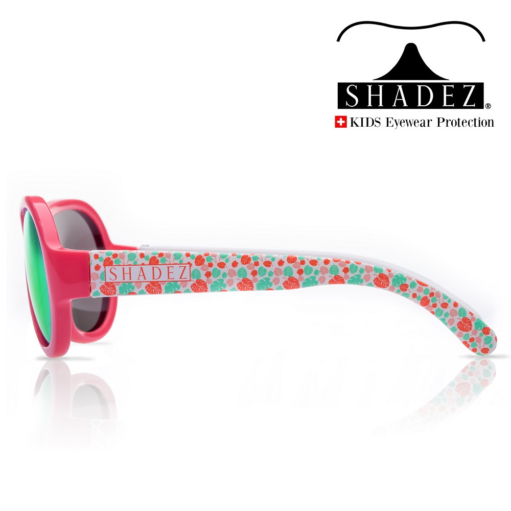 Shadez Design Pink Leaves tough sunglasses for children are both comfortable and protective and made in Swiss design with a good fit. The sunglasses are made of very shock-resistant and flexible material and equipped with durable lenses, which provide 100% UV protection (UV-A and UV-B) and high resistance to scratches. All Shadez sunglasses are completely free of BPA, phthalates, vinyl, PVC and lead.