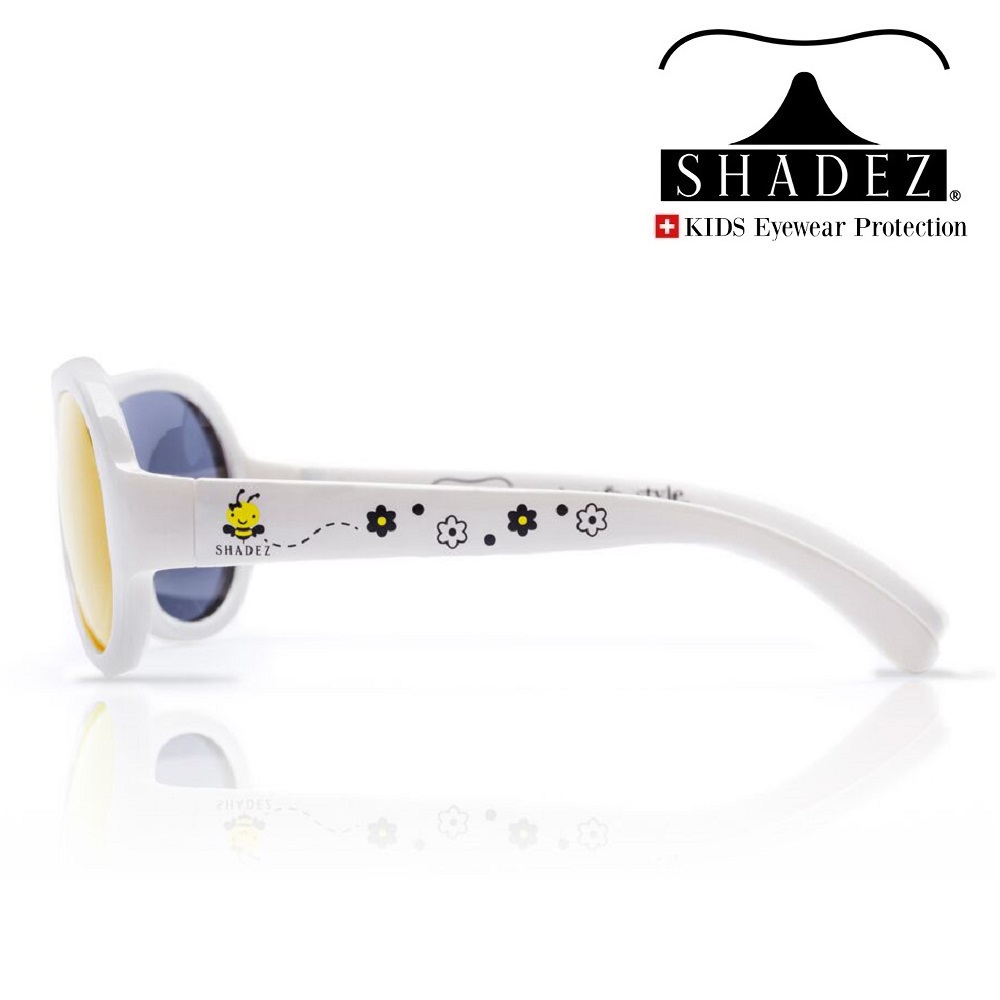 Shadez sunglasses Busy Bee Baby are made in a cute and durable Swiss design. They are comfortable to wear thanks to a design that is specially adapted to young children's faces. Shadez sunglasses are made of durable and flexible material (frame and temples) and have protective and durable lenses, which both protect children's eyes from the sun's dangerous rays and minimize the risk of scratches on the glasses. The sunglasses have 100% protection against UV-A and UV-B and are free of BPA, phthalates, vinyl, PVC and lead.