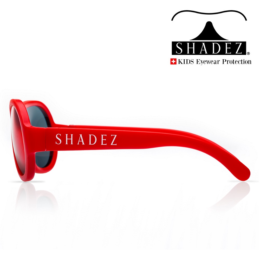 Shadez sunglasses Red Baby are made in a cute and durable Swiss design. They are comfortable to wear thanks to a design that is specially adapted to young children's faces. Shadez sunglasses are made of durable and flexible material (frame and temples) and have protective and durable lenses, which both protect children's eyes from the sun's dangerous rays and minimize the risk of scratches on the glasses. The sunglasses have 100% protection against UV-A and UV-B and are free of BPA, phthalates, vinyl, PVC and lead.