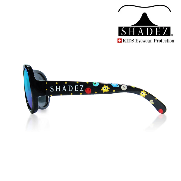 Shadez sunglasses Space Black Baby are made in a cute and durable Swiss design. They are comfortable to wear thanks to a design that is specially adapted to young children's faces. Shadez sunglasses are made of durable and flexible material (frame and temples) and have protective and durable lenses, which both protect children's eyes from the sun's dangerous rays and minimize the risk of scratches on the glasses. The sunglasses have 100% protection against UV-A and UV-B and are free of BPA, phthalates, vinyl, PVC and lead.