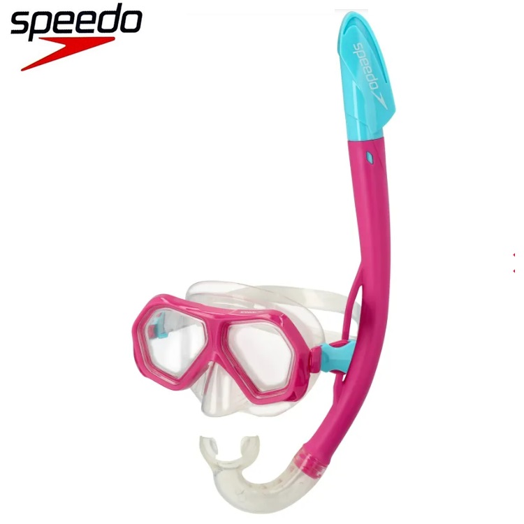 Speedo Leisure Junior Pink is a practical and fun snorkel set for children with a comfortable mask with good fit and a snorkel for wet days in the pool and sea. The Speedo mask has anti-fog treated glass and protects children's eyes from chlorine and salt water. Both the mask and the snorkel are made in size to fit the child’s face and mouth.