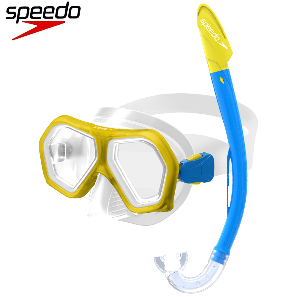 Speedo Leisure Junior Yellow is a practical and fun snorkel set for children with a comfortable mask with good fit and a snorkel for wet days in the pool and sea. The Speedo mask has anti-fog treated glass and protects children's eyes from chlorine and salt water. Both the mask and the snorkel are made in size to fit the child’s face and mouth.
