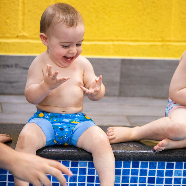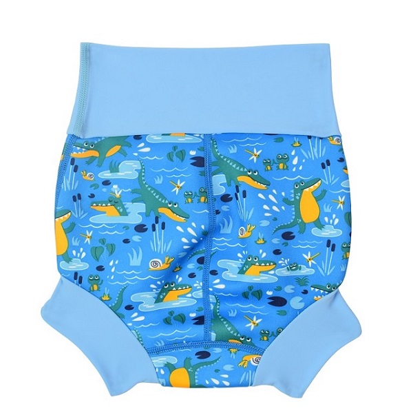 SplashAbout Happy Nappy Crocodile Swamp is a tight-fitting and comfortable reusable swim diaper for babies and small children. The swim diaper prevents embarrassing and unhygienic leaks and accidents in the pool. The Happy Nappy swim diaper is developed together with swimming instructors. It has an ergonomical design to move with the baby as they kick and move in the water and it is cup shaped to fit the baby’s bottom. The waist and thigh ribs snugly to the child’s body, forming a seal that prevents any solids leaking out.