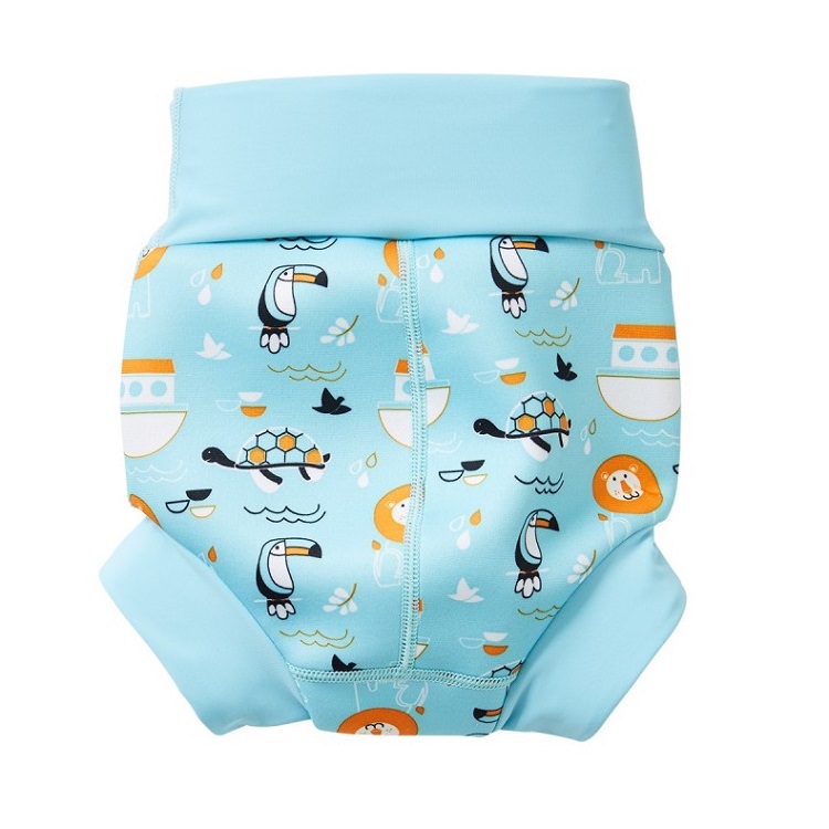 SplashAbout Happy Nappy Noah's Ark is a tight-fitting and comfortable reusable swim diaper for babies and small children. The swim diaper prevents embarrassing and unhygienic leaks and accidents in the pool. The Happy Nappy swim diaper is developed together with swimming instructors. It has an ergonomical design to move with the baby as they kick and move in the water and it is cup shaped to fit the baby’s bottom. The waist and thigh ribs snugly to the child’s body, forming a seal that prevents any solids leaking out.