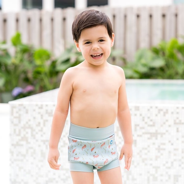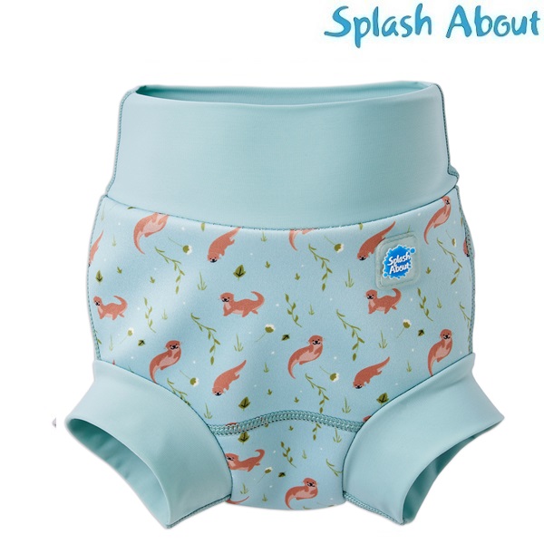 SplashAbout Happy Nappy Playful Otters is a tight-fitting and comfortable reusable swim diaper for babies and small children. The swim diaper prevents embarrassing and unhygienic leaks and accidents in the pool. The Happy Nappy swim diaper is developed together with swimming instructors. It has an ergonomical design to move with the baby as they kick and move in the water and it is cup shaped to fit the baby’s bottom. The waist and thigh ribs snugly to the child’s body, forming a seal that prevents any solids leaking out.