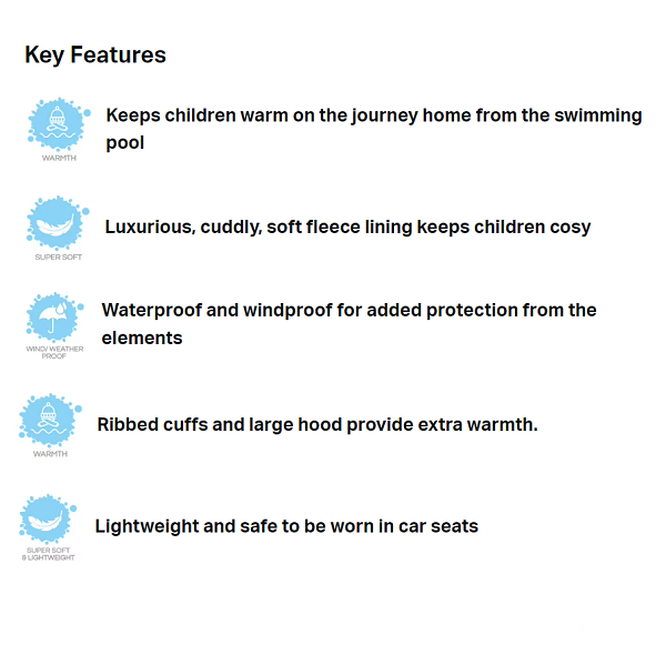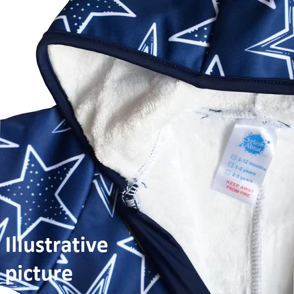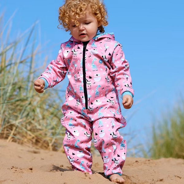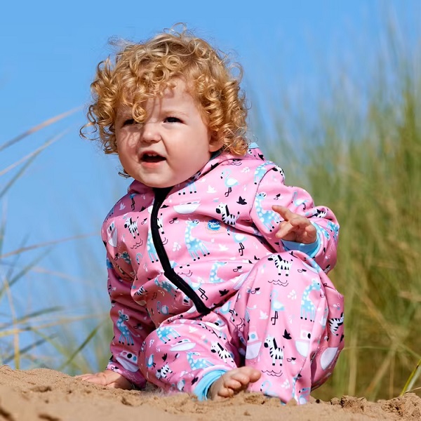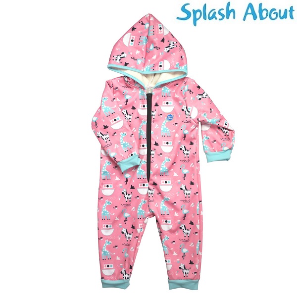 SplashAbout Waterproof Onesie Nina's Ark is a warm and comfortable onesie for babies and small children with a wonderfully comfortable fleece-lined inside. The cozy onesie from SplashAbout is both waterproof and windproof and has ribbed cuffs and an extra-large hood and warms your child nicely after a swim or when it's cold outside.