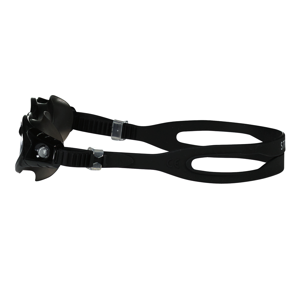 Comfortable and functional swimming goggles for children (6-12 years) made of environmentally friendly TPE. Strooem Swim Goggles Visionr JR Black have a good fit and are equipped with eye lenses with anti-fog and UV protection that protects the children's eyes from chlorine, salt and UV radiation. The swim goggles have a neck buckle with easy size adjustment function and a two-part neckband made of silicone. Use the Strooem children's goggles for wet days in the pool or in the sea.