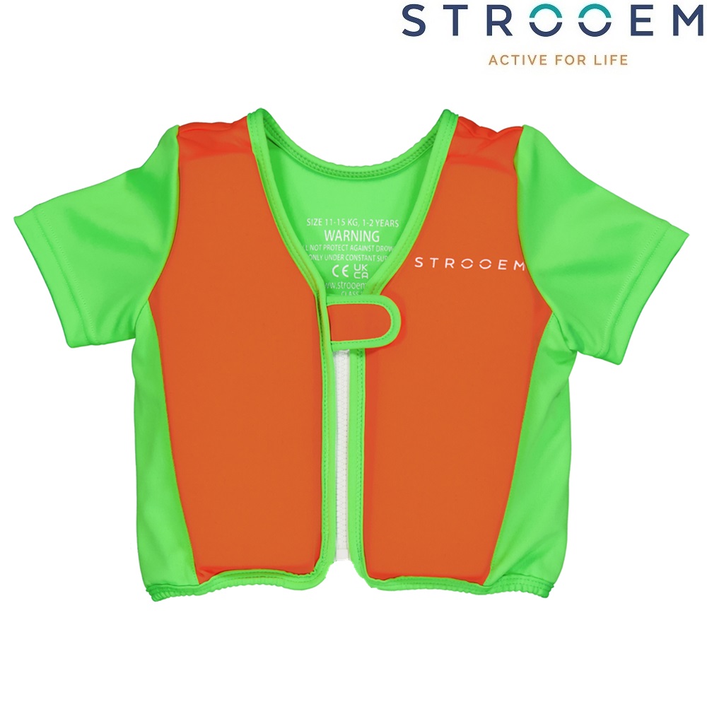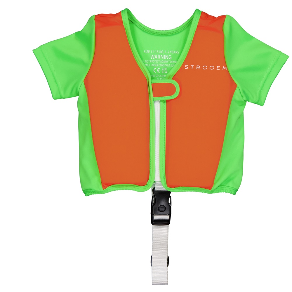 Strooem Green & Orange is a nice and comfortable swim vest for children for swimming in the pool and the sea. The swim vest is filled with puncture-proof floatation elements and crotch straps with buckles for maximum safety. The Strooem swim vest closes with a zipper and velcro. For maximum comfort and fit, the swim vest has soft sleeves that make the vest sit properly on the child and make it comfortable to wear. The Strooem swim vest is made of soft and environmentally friendly material with UV protection.