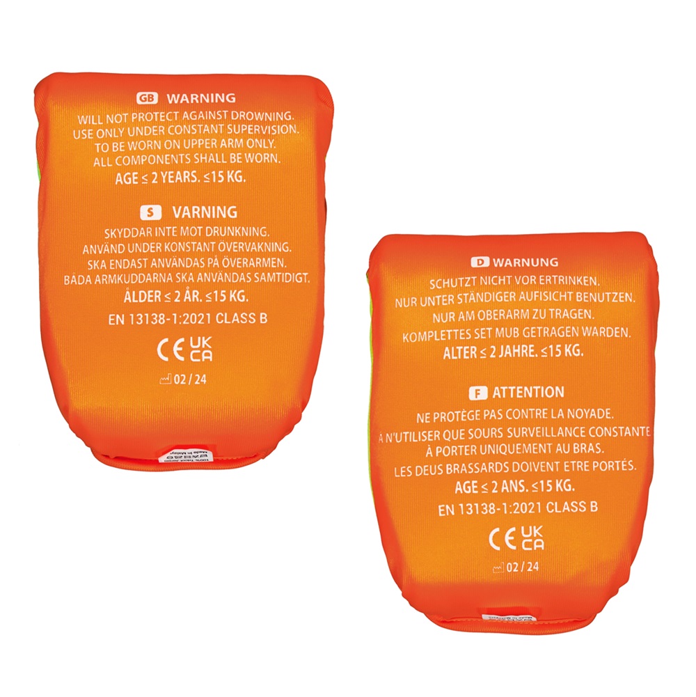 Strooem Softies Foam Orange is a pair of puncture-proof swimming armbands for children. The swimming armbands are filled with foam, i.e. do not need to be inflated. The swimming armbands are available in sizes 0-2 years and 2-6 years (see specification below). Strooem Softies Foam are made of soft material and are comfortable for the child to wear as the seams are turned inward to avoid chafing. The shape is designed so that the child can move freely and feel safe when swimming. The swimming armbands are made in clear colors for high visibility in the water and are delivered in a mesh bag.