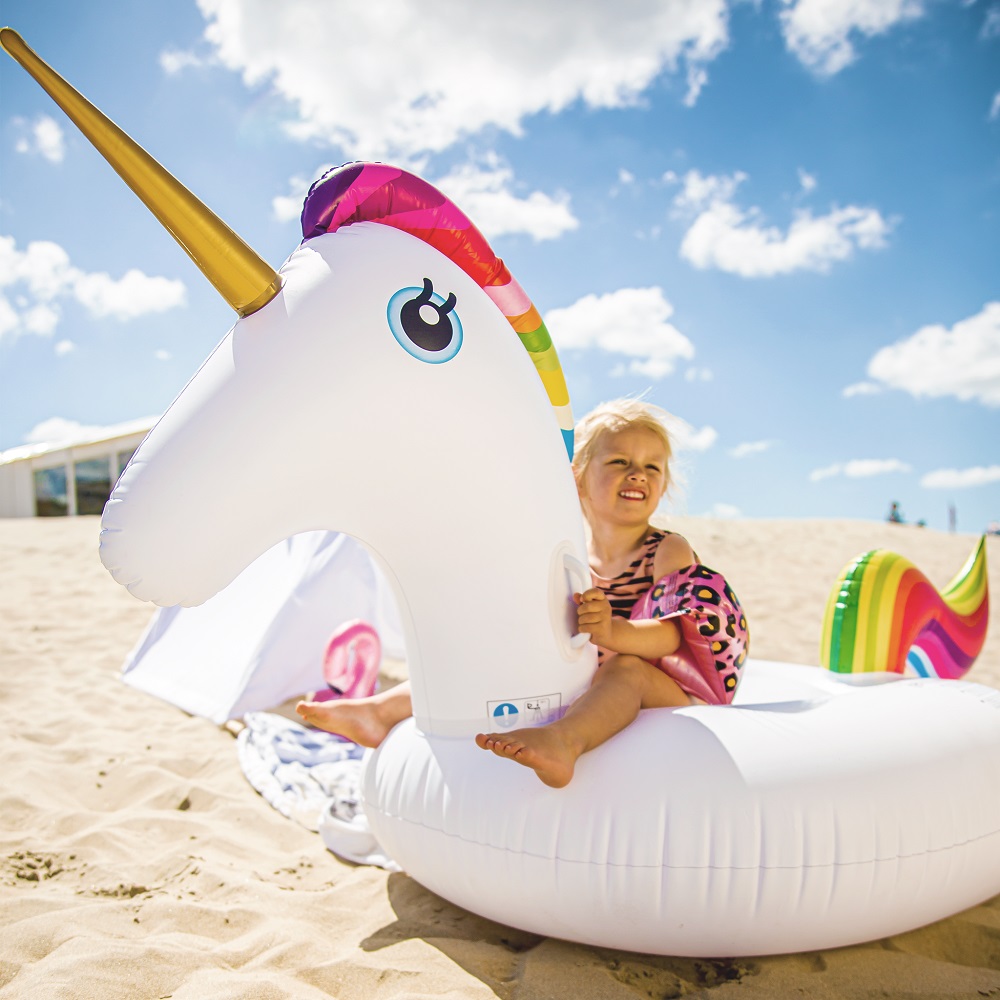 Swim Essentials Unicorn XXL is a large and inflatable pool float for play in the pool and sea. The Unicorn is large in size (160 x 130 x 67 cm) and is equipped with practical handles for the child to hold on to. Swim Essentials inflatable toys are made of durable and toxic free PVC (0.2 mm thick) and are safety tested according to EU standards (see below). The Swim Essentials Pool Float has a capacity of up to 80 kg and is intended for children 6 years +.