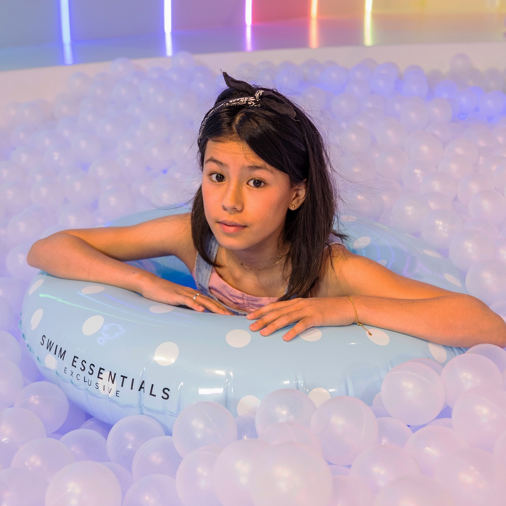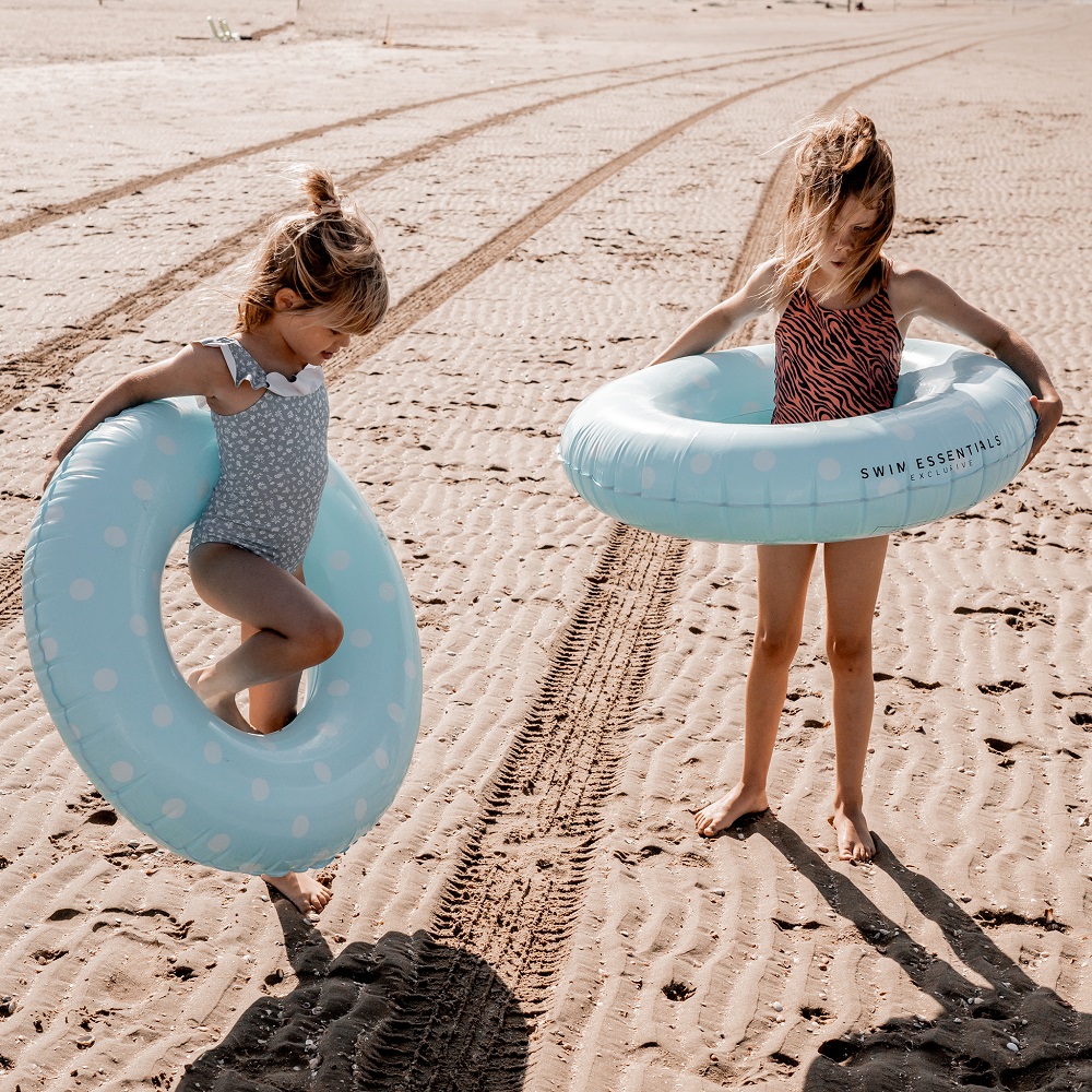 Swim Essentials Blue with Dots XL is a large, stable and inflatable swim ring for children. Perfect to use for wet days in the sea and pool on the beach holiday or on the home beach. The swim ring is 90 cm in diameter and has a capacity of up to 80 kg (intended for children 6 years +). It is made of non-toxic and durable PVC, has a safety valve and is safety tested according to EU standards (see below).
