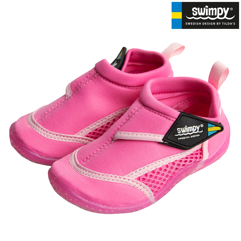 Swimpy Cerise are light and protective beach and swim shoes for children made of comfortable neoprene and mesh with soft fabric on the top. Swimpy beach shoes protect your children's feet from sharp rocks and hot sand on the beach through a heat-resistant sole in TPR rubber.