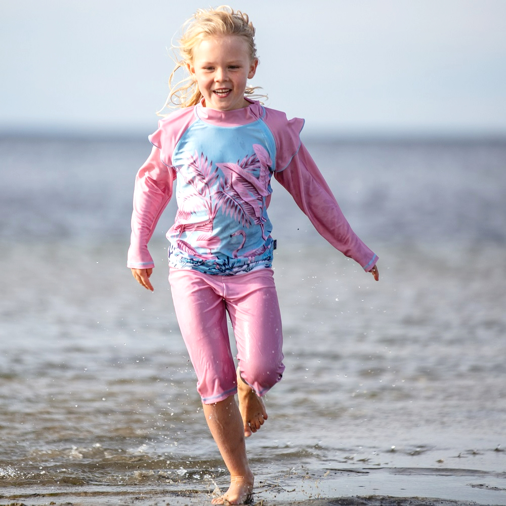 Swimpy Flamingo is a stylish and protective UV set for children from Swimpy containing a rash guard and a pair of UV swim shorts. Swimpy's sun protection clothing, which protects against the sun's dangerous UV rays, is made of soft and flexible material that is comfortable even when wet and dries quickly after use. Swimpy's UV swim clothes are perfect for swimming and beach life both on holiday and at home.