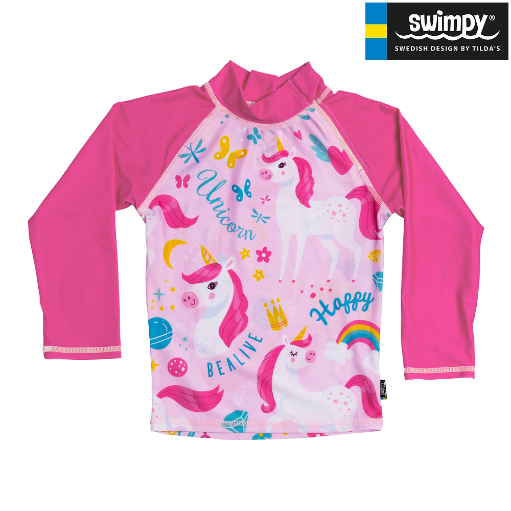 Swimpy Unicorn UV Shirt is a comfortable and UV protective rash guard for children. The rash guard, which protects against the sun's dangerous UV rays, is made of soft and flexible material with a nice and clearly visible motif. Swimpy's sun protection clothing is suitable for bathing and beach life both on holiday and on the home beach.